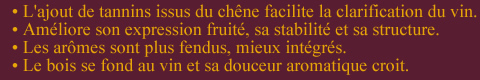 C'est un outil de vinification très flexible qui offre plus de polyvalence et de souplesse d'action que la barrique, toutefois, copeaux et barriques sont des outils totalement complementaires.